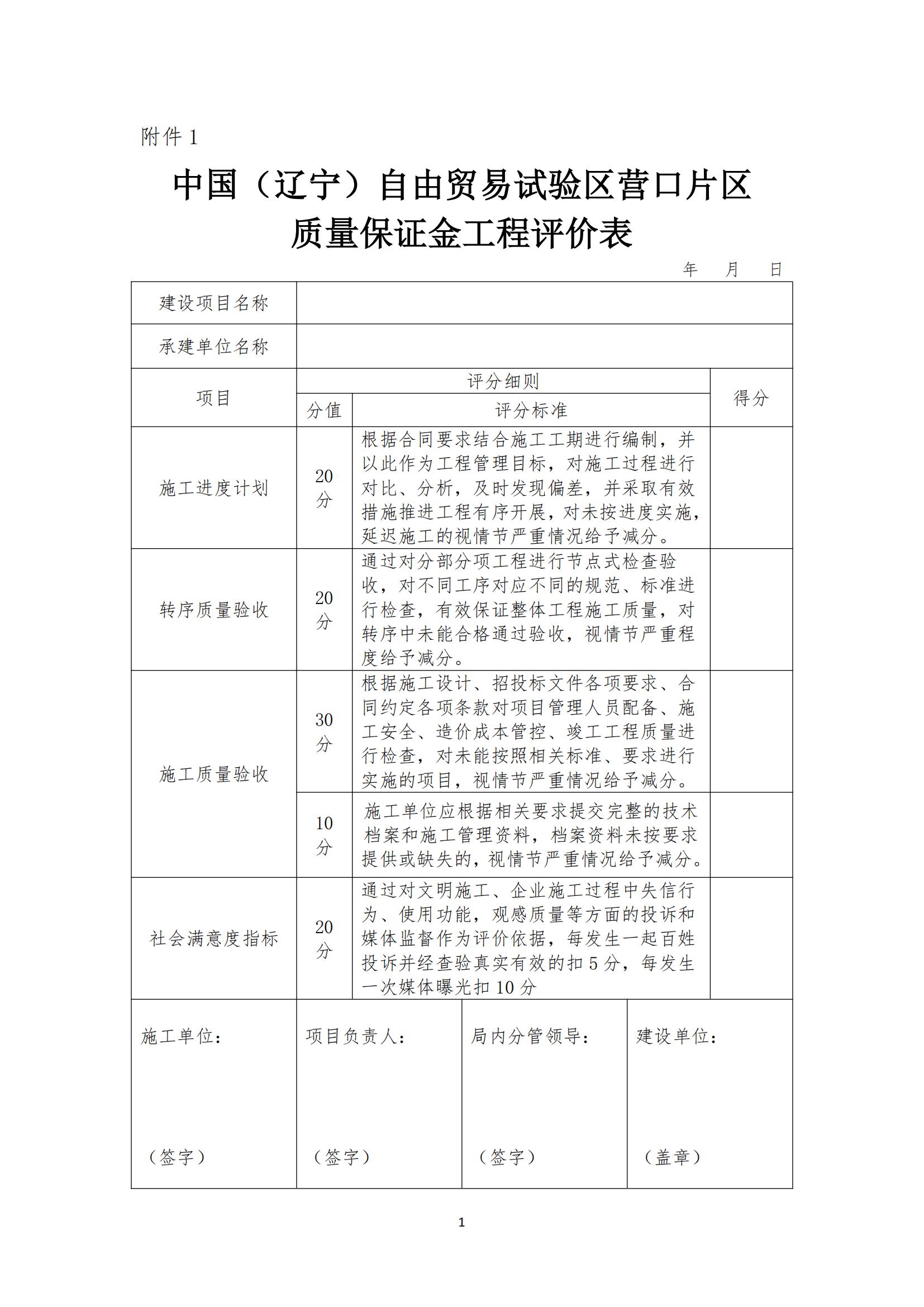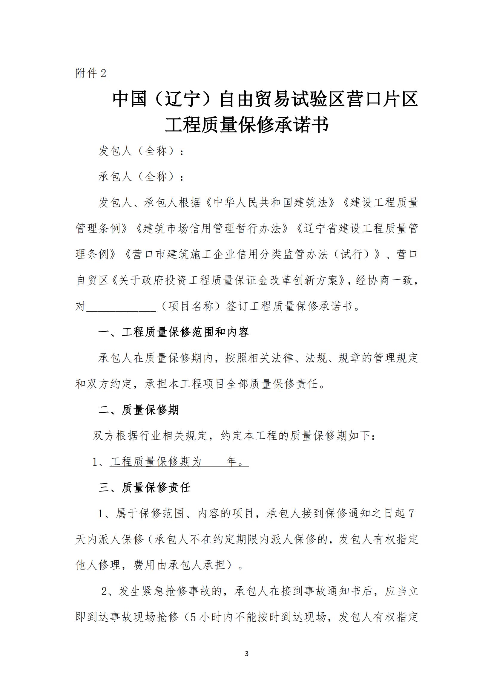 中国(辽宁)自由贸易试验区营口片区政府投资工程质量保证金改革创新方案(征求意见稿)
