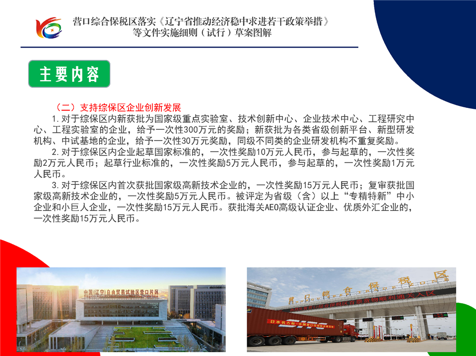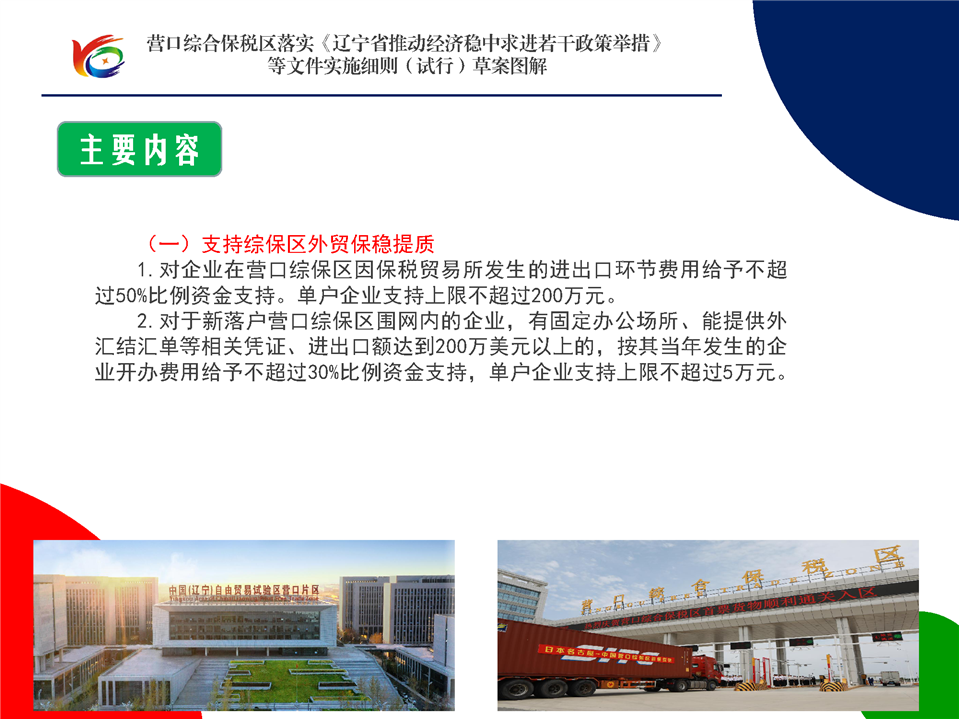 《营口综合保税区落实辽宁省推动经济稳中求进若干政策举措等文件实施细则(试行)》草案图解