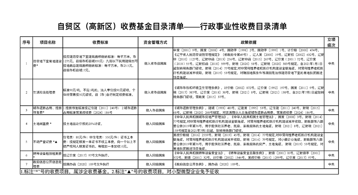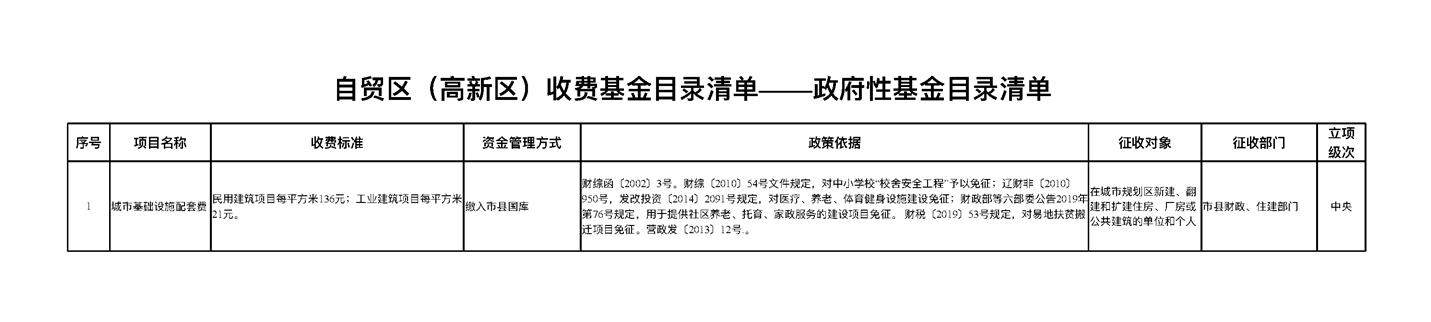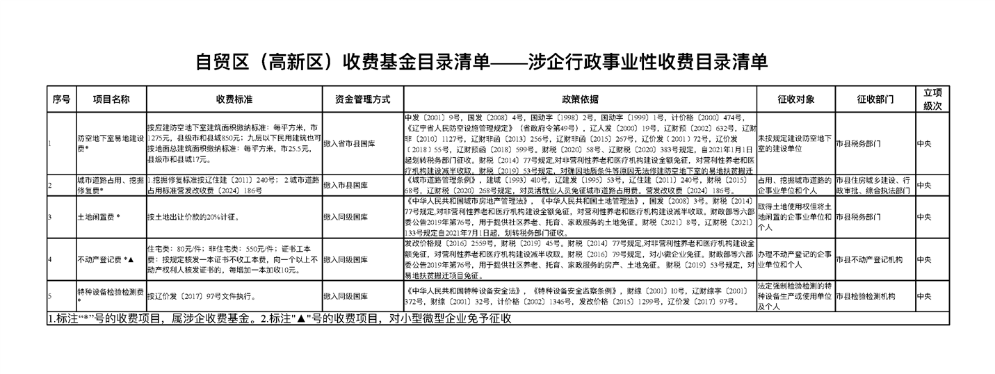 自贸区(高新区)收费基金目录清单——涉企行政事业性收费目录清单